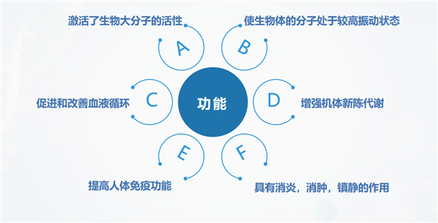 有(yǒu)利于高(gāo)血壓和(hé)心腦(nǎo)血管患者恢複, 潔淨髒腑、 促進細胞®π♣活 性、 消除輻射、 電(diàn)負離(lí)↑≈子(zǐ)清除自(zì)由基, 使人(rén)體(tǐ)獲得(>✔♣§de)康複效果。